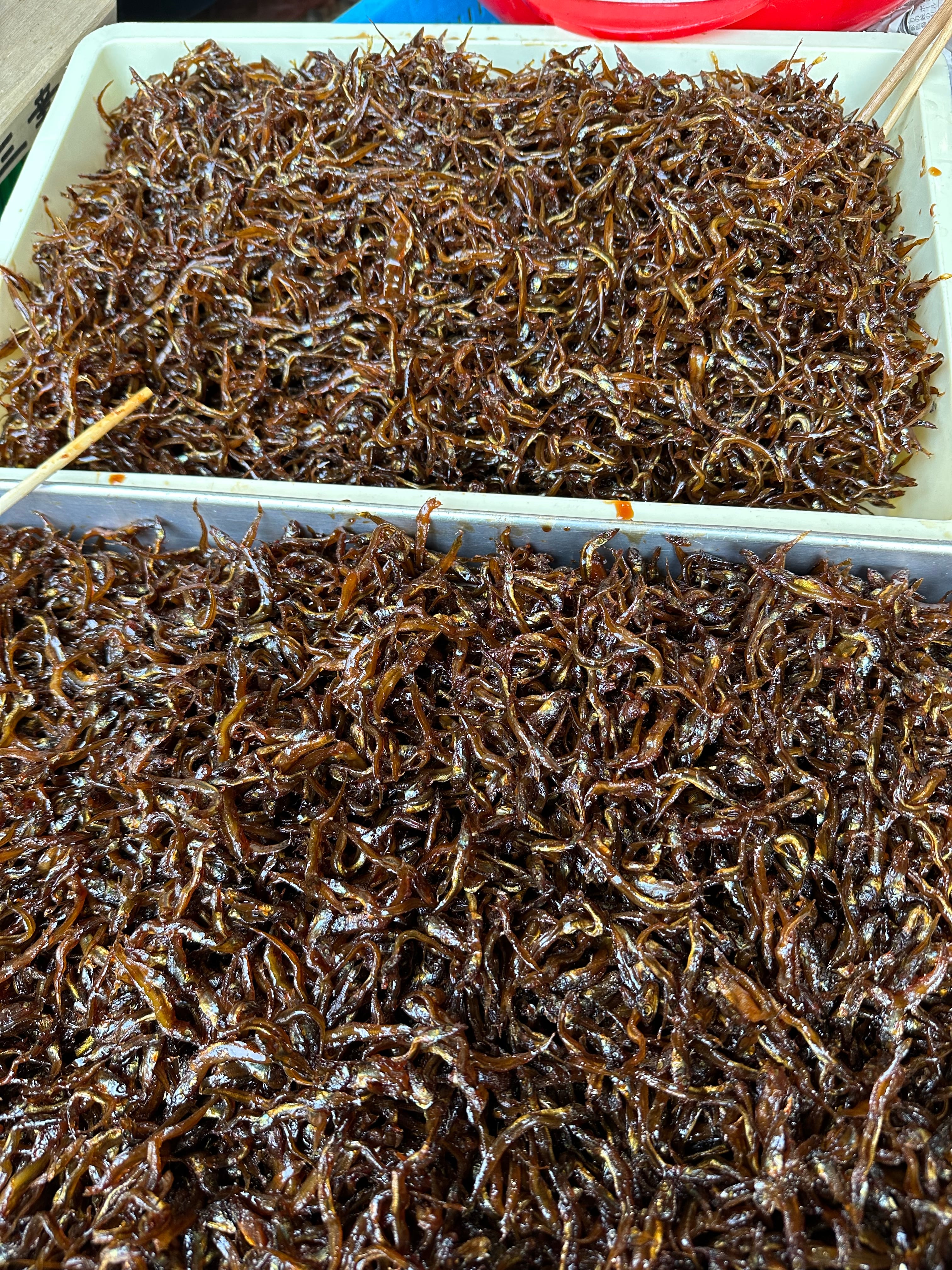 漁師が獲った新鮮な稚魚達(イカナゴやシラス、メバルの稚魚など)を鮮度の良いうちに醤油や砂糖(ザラメ)、みりんなどで甘辛く煮詰めた佃煮。